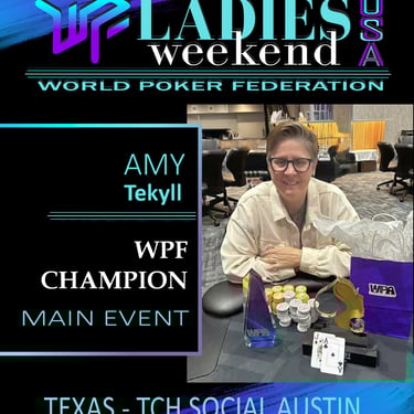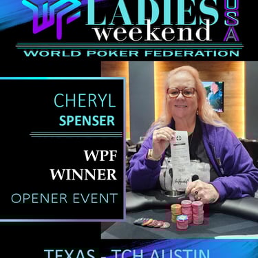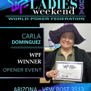 Most importantly, a HUGE THANK YOU for the support of the poker room operators, WPF USA Ambassadors, the Women's Poker Association and the team of the World Poker Federation. It also goes without saying, if you women poker players didn't support this initiative, it could not have happened! THANK YOU!